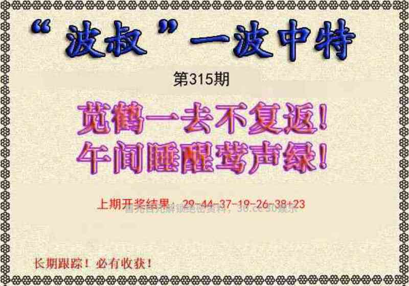 | 311期【澳彩36码】中特=开:蛇37准 |