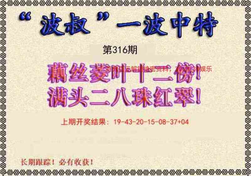 | 316期:【绝杀三肖】【鼠羊蛇】开:马24准 |
